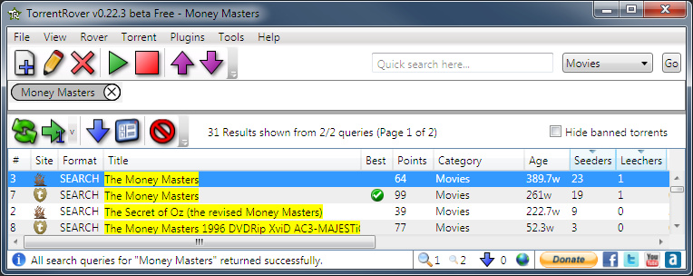 Com o TorrentRover, o download de torrents é num “piscar de olhos”. Pode prefazer o download de qualquer torrent (ou torrents) com apenas dois cliques do rato, mas TorrentRover consegue até o download automático, após definir diversos parametros.